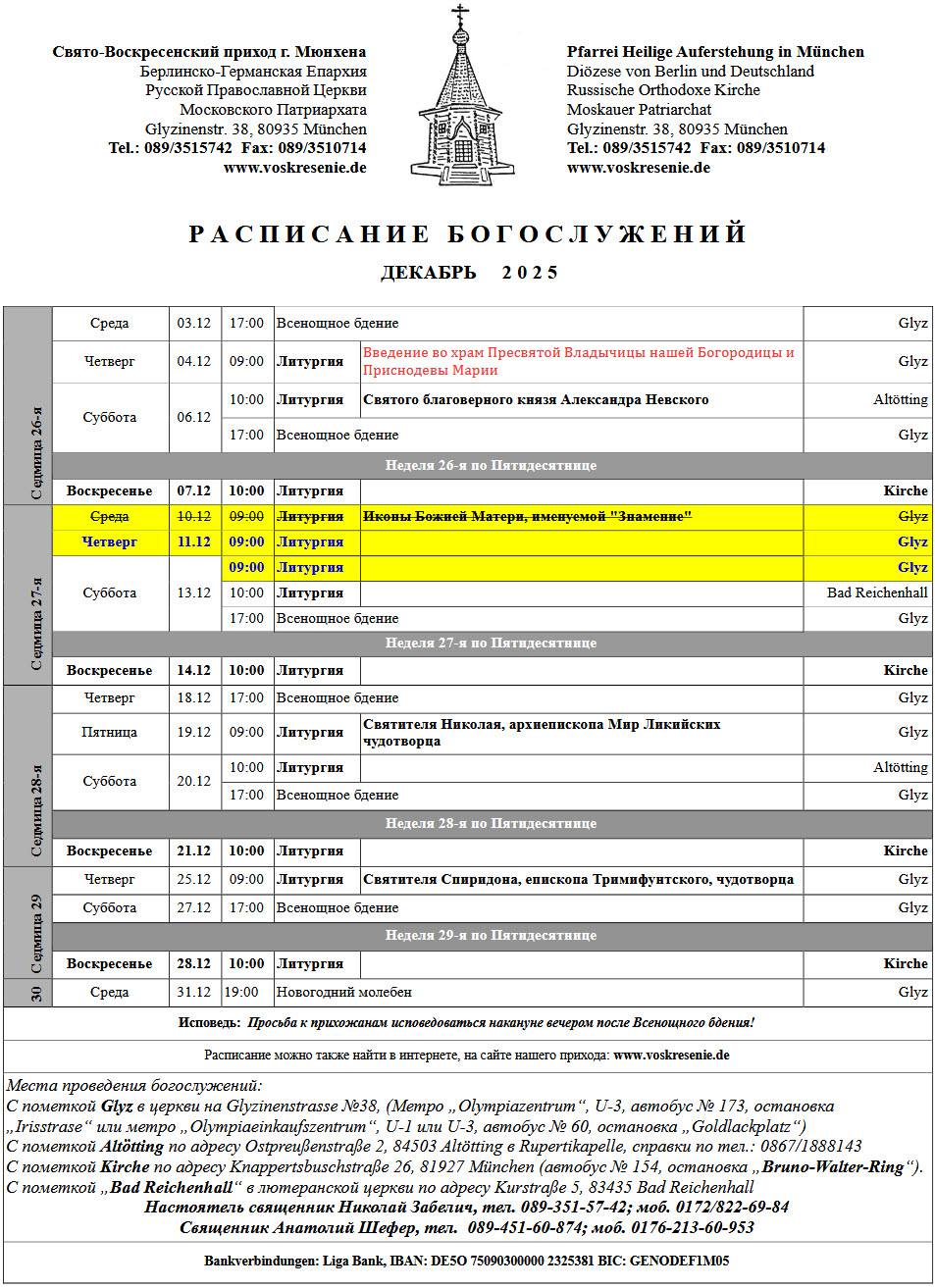 За внесенные пожертвования Вы можете получить специальный документ „Spendenbescheinigung“ о произведенном пожертвовании, который можно приложить к годовому налоговому отчету для снижения налогов. Укажите для этого в строке „Zweck“ (назначение платежа) Ваш адрес с индексом. Для получения более подробной информации о строительстве обращайтесь к настоятелю Свято-Воскресенского прихода отцу Николаю Забеличу +49 172 822 69 84 или к секретарю прихода Матвею Кобро +49 176 220 51 660.